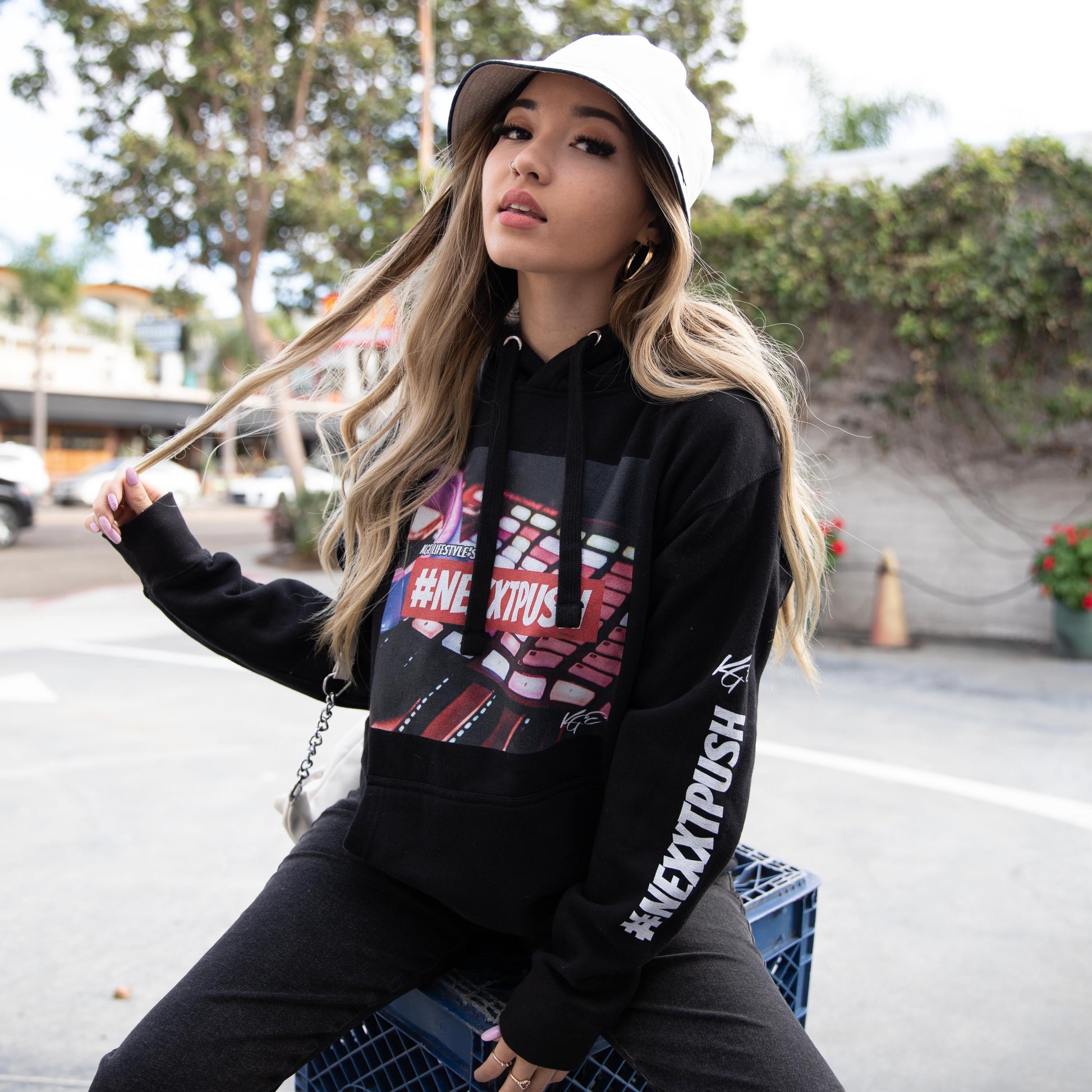 #Nexxtpush Los Angeles CA, Classic unisex hoodie with a front pouch pocket and matching flat drawstrings. The 100% cotton exterior makes this hoodie soft to the touch.