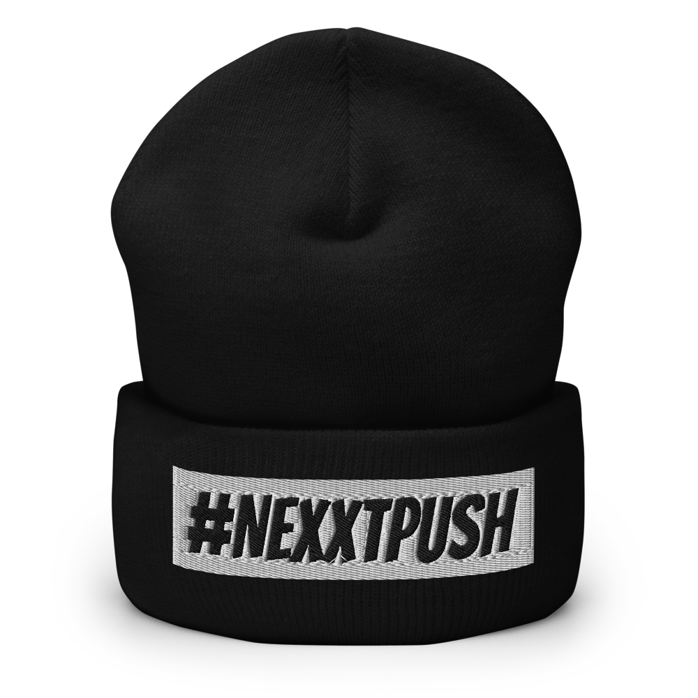 #Nexxtpush White Bar Cuffed Beanie